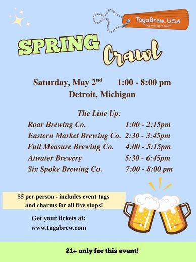 Join us for our annual TagaBrew Brewery Crawl in Detroit, Michigan!